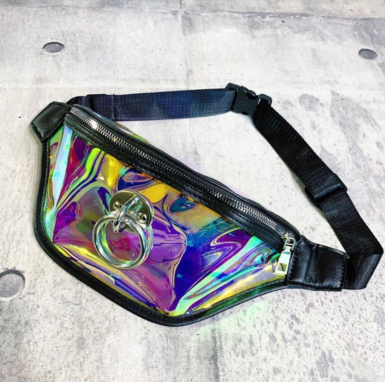 角度で色が変わるPVC素材のオーロラボディバッグ