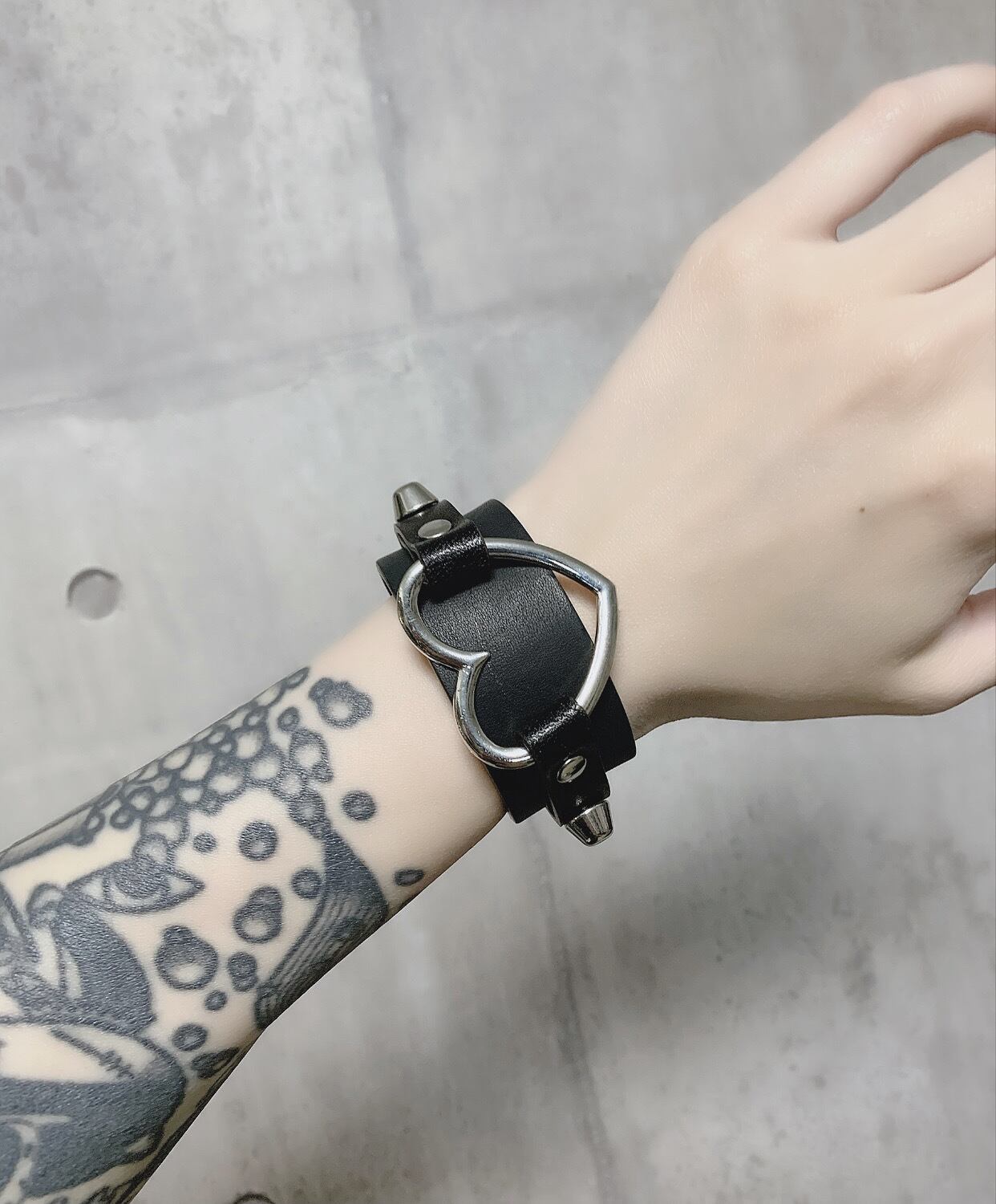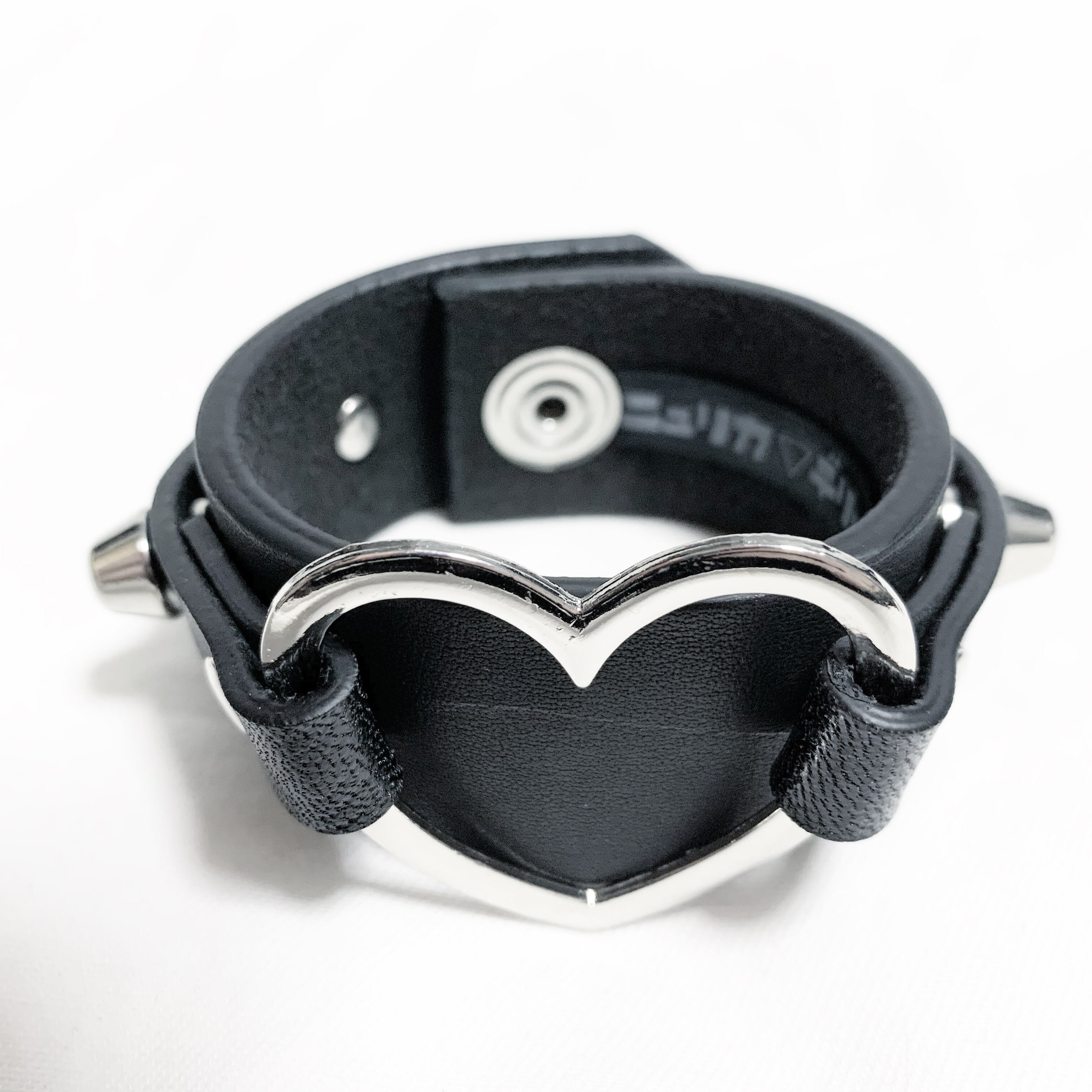 ハートリングチャーム、サイドプリンスタッズデザインで甘辛ブレスレット。