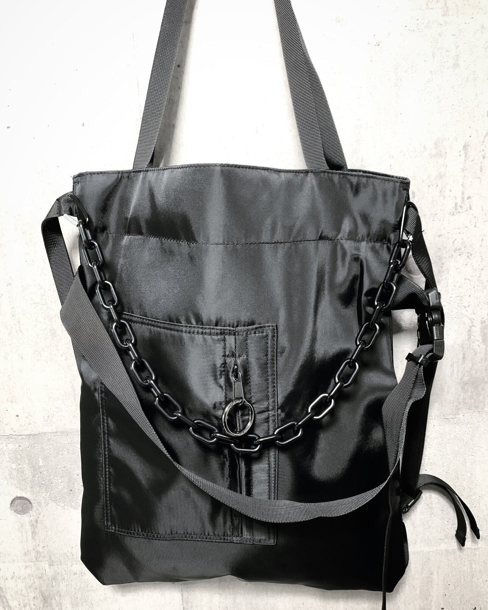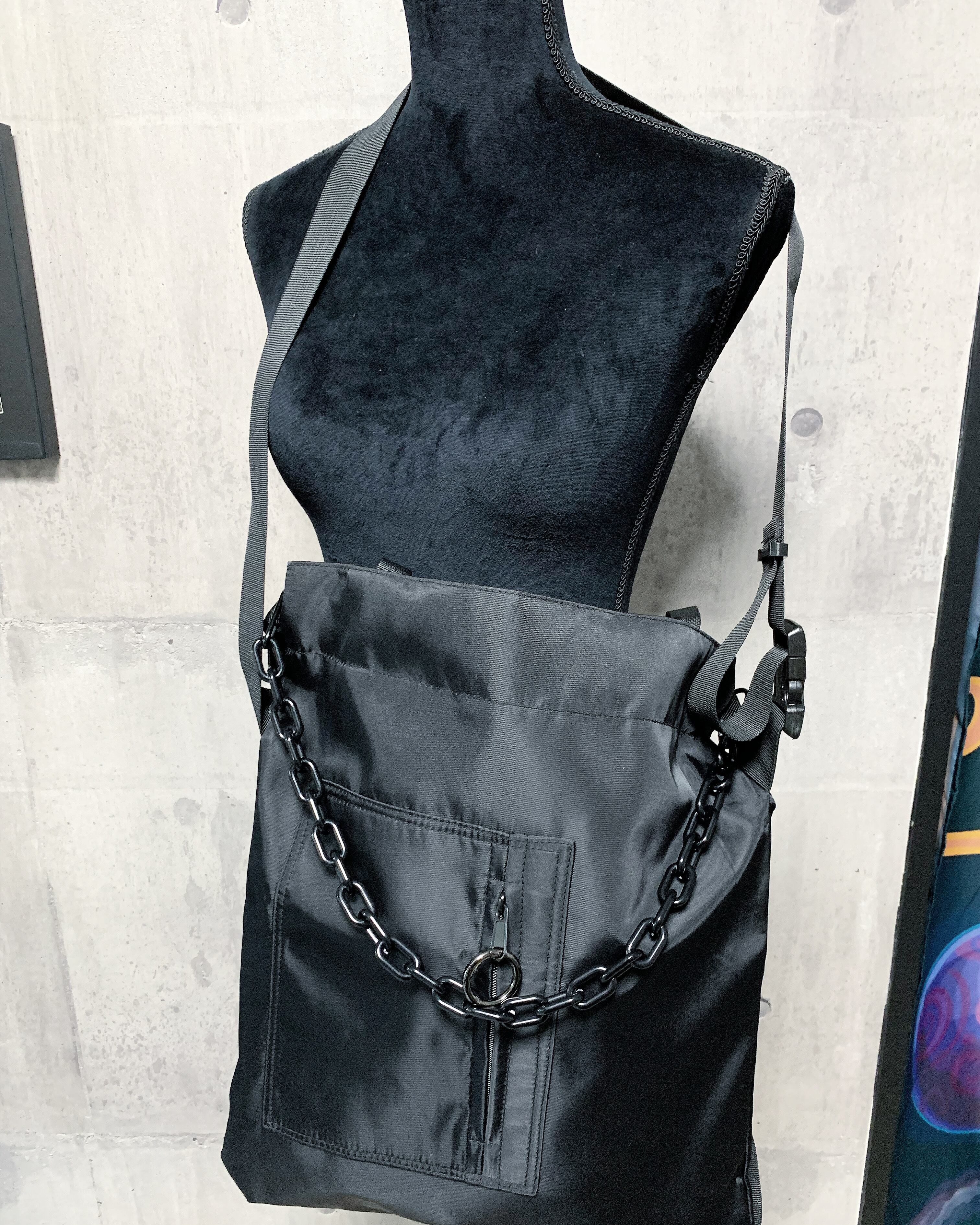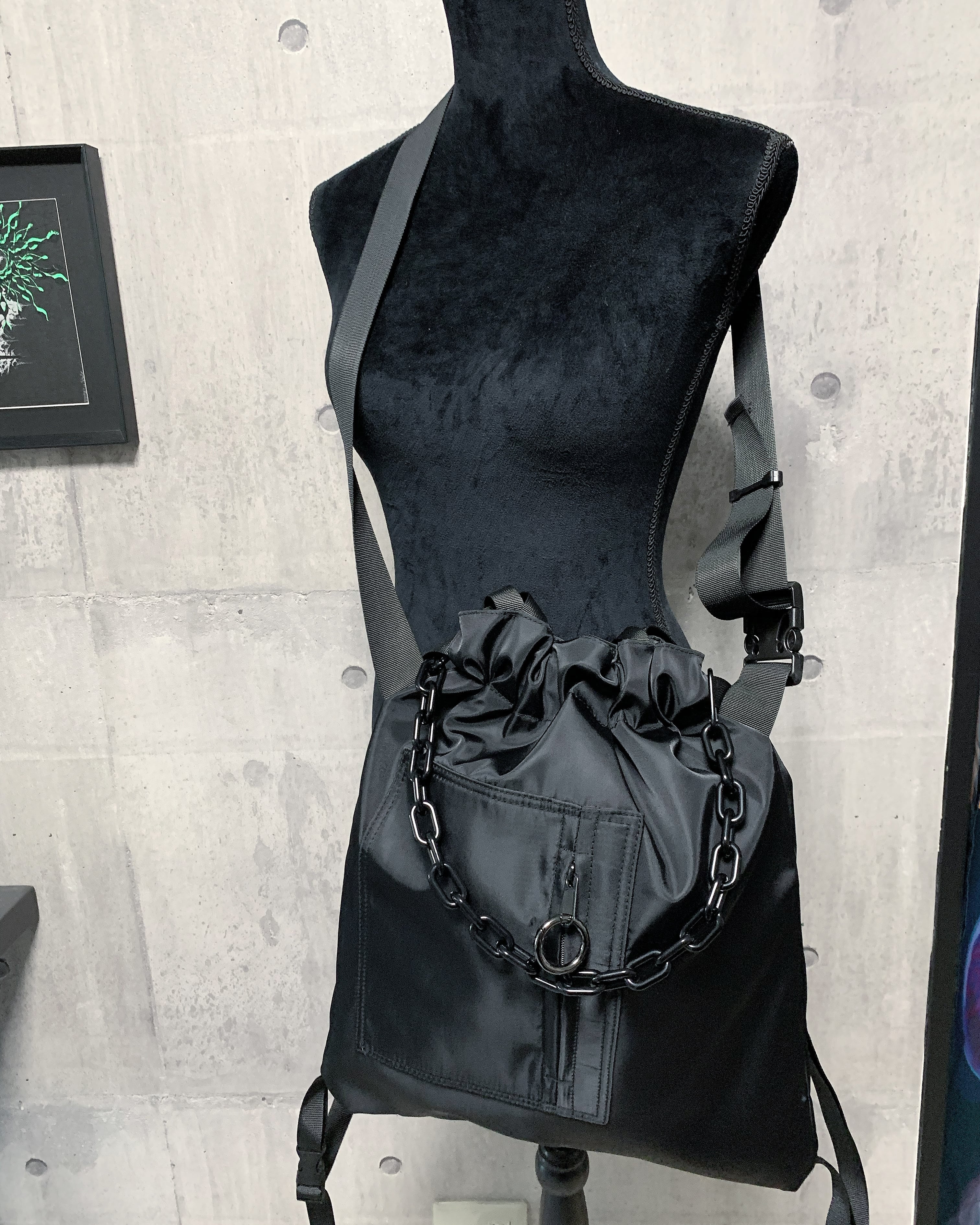 サイドのショルダーを引っ張るとバッグ入り口が絞れると共にリュックショルダーになる仕様、
